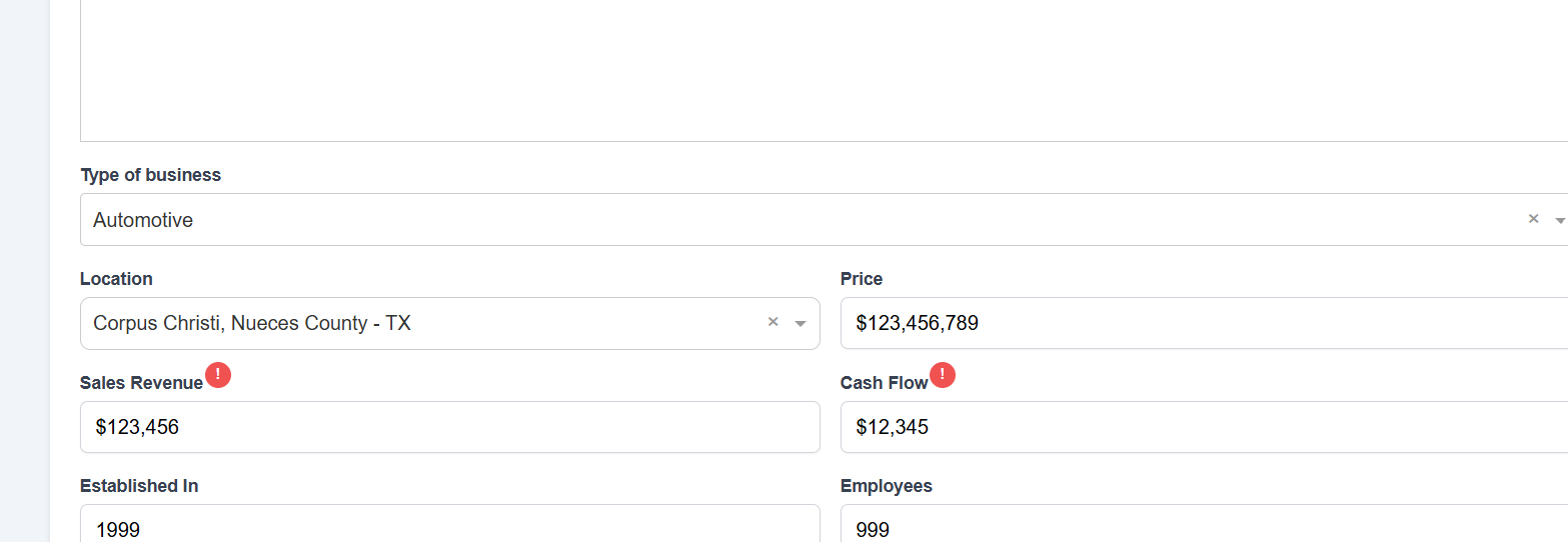 Probleme bei Einstellung Business Listing "Cash flow" / "Sales revenue" #135