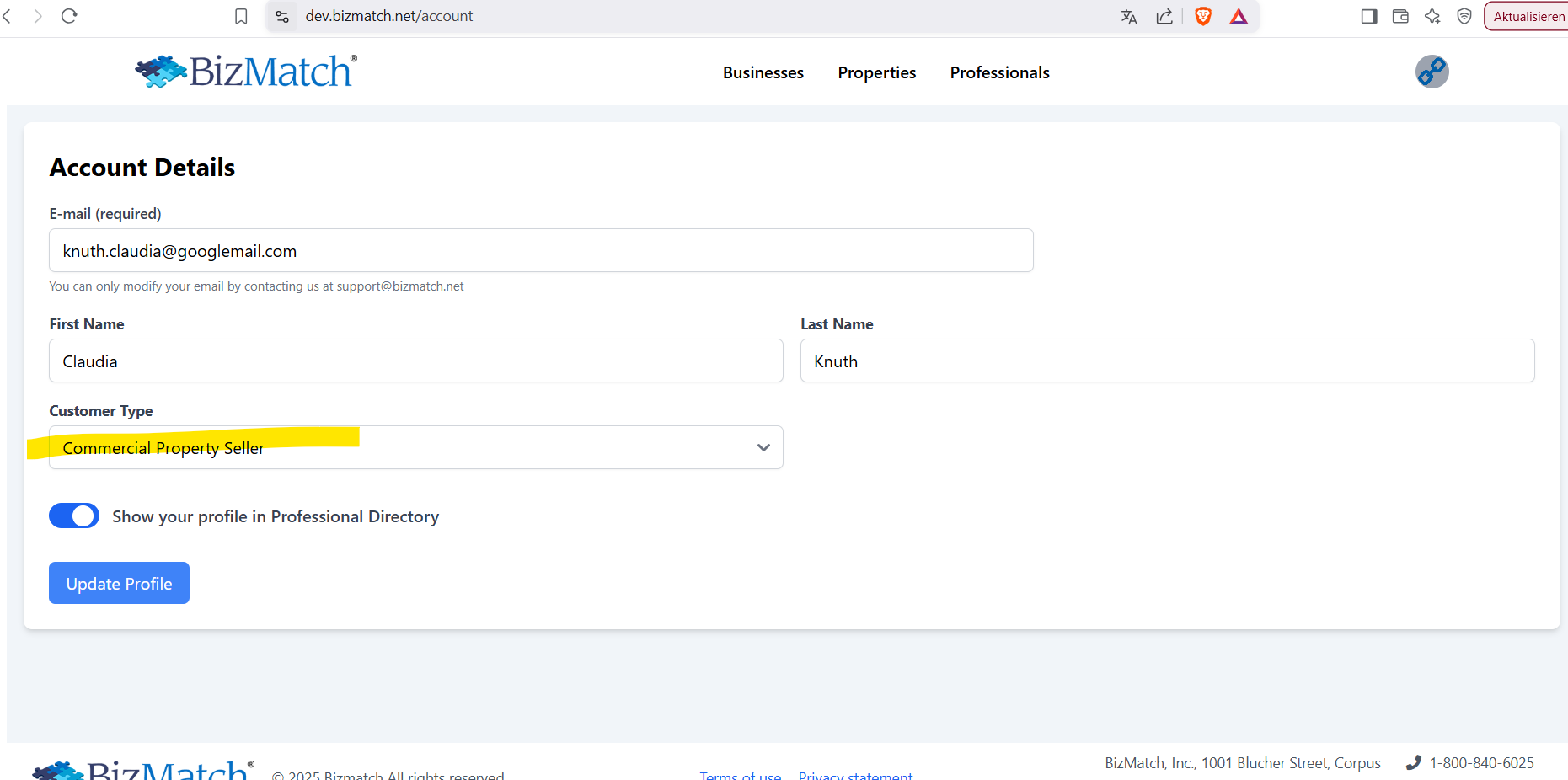 Business-Eingabe als Comm.Prop.Seller möglich, wenn vorher Professional #140