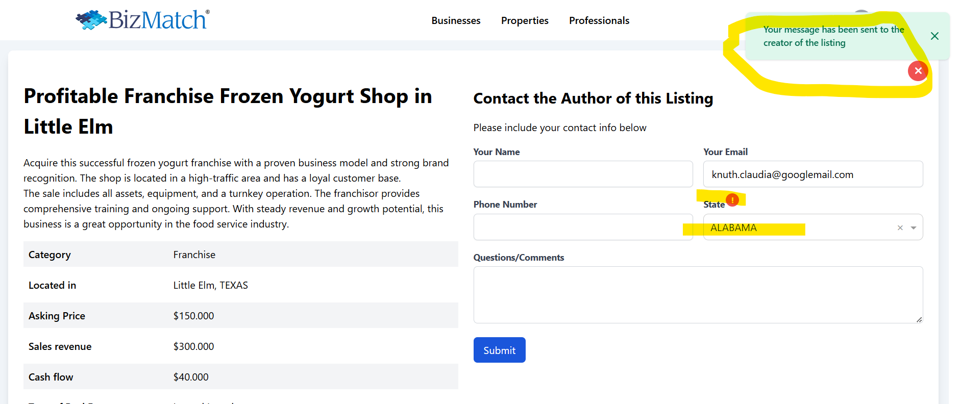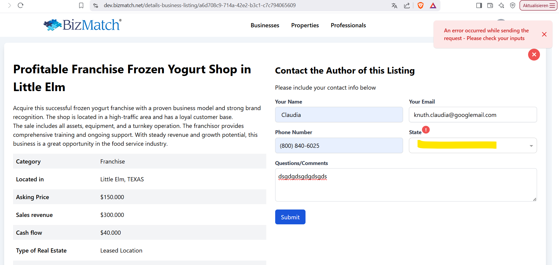 hier meckert er, aber wenn ich den State ausfülle, dann versendet er zwar die Mail, ABER der Fehlerhinweis (roter Infokreis) bleibt: