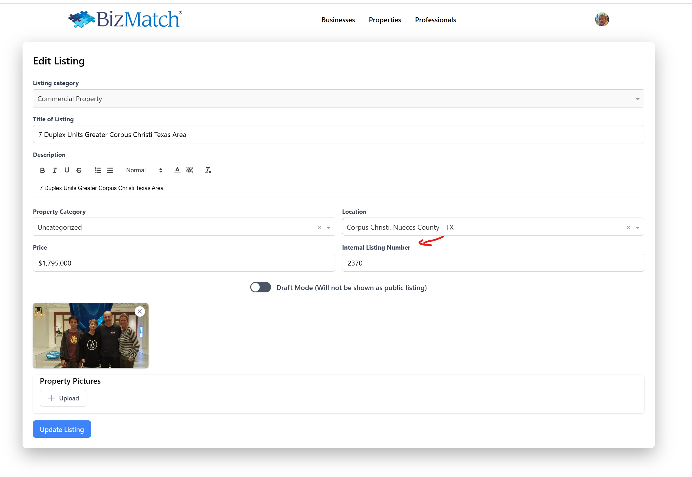 internal Listing Number for commercial properties #156