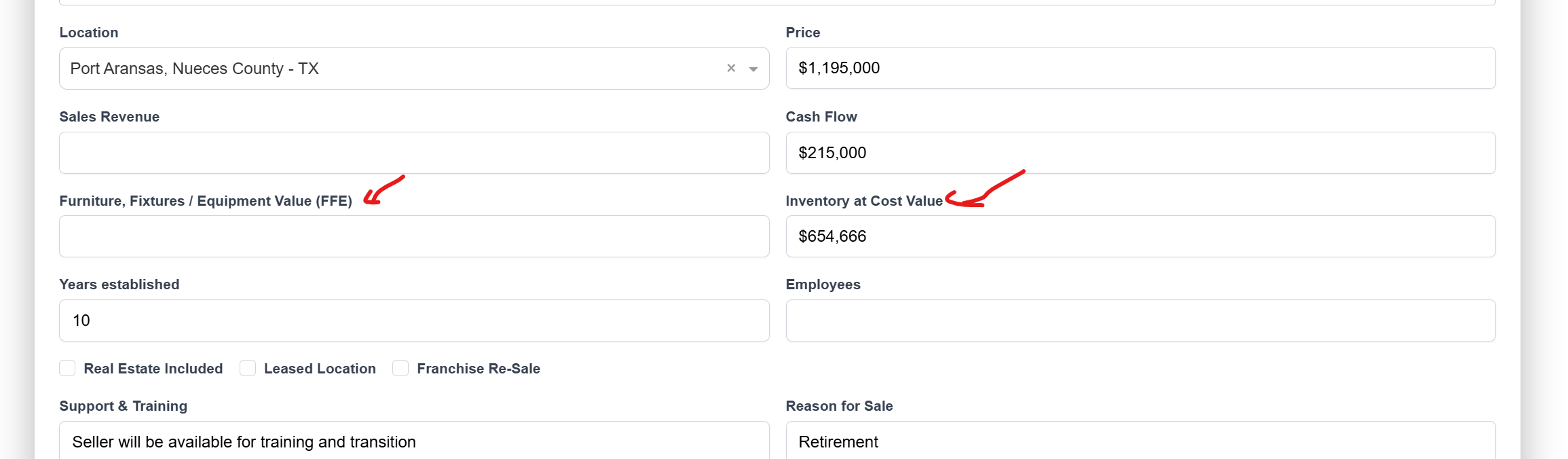 Furniture, Fixtures / Equipment Value (FFE) und Inventory at Cost Value einbauen #157