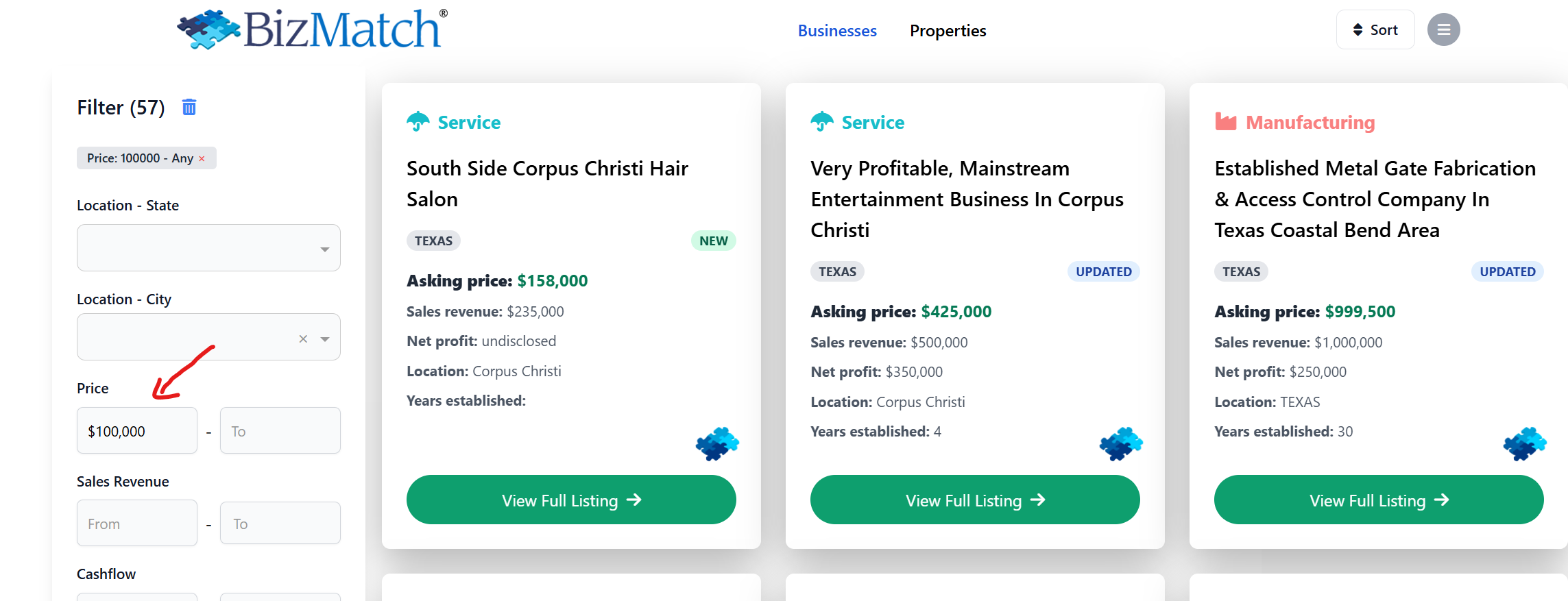 Bsp.weise beim Eintippen von price: 1000000