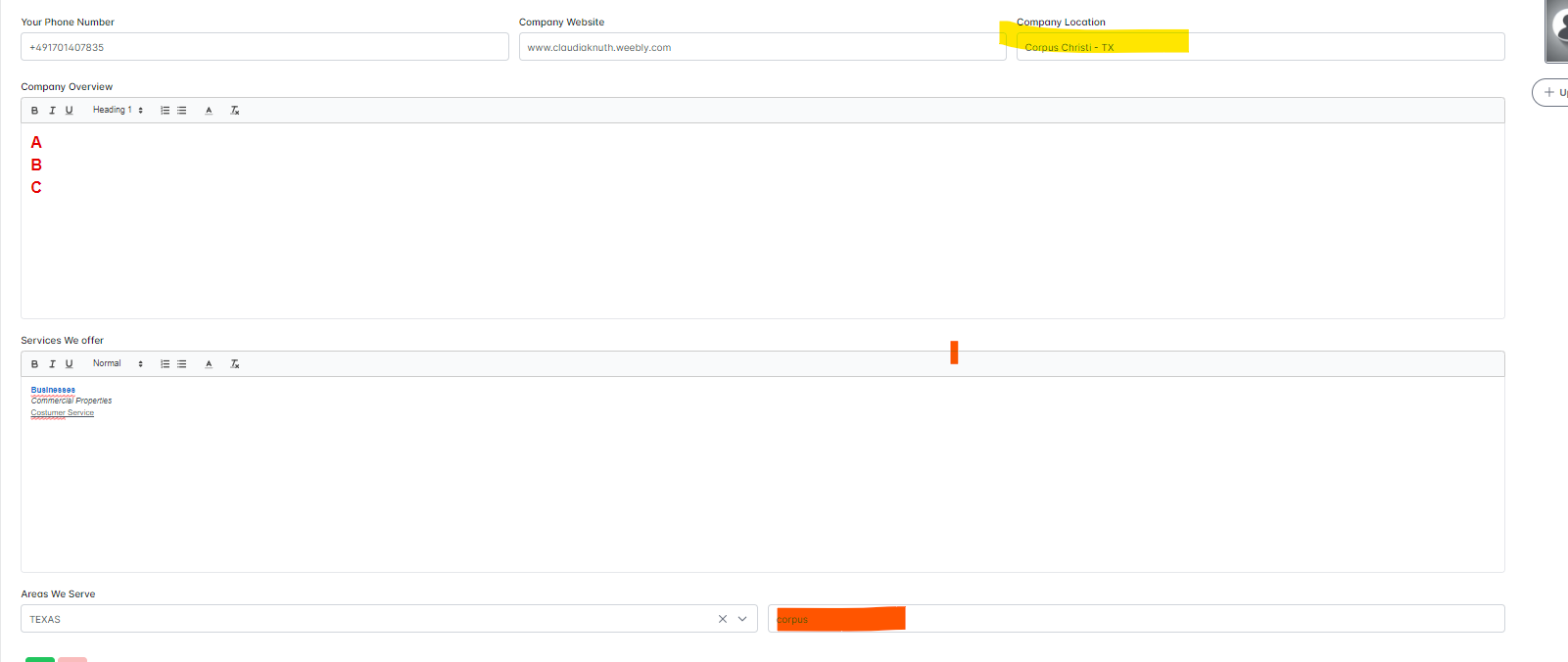 Areas we serve bezieht sich auf Counties. Dort habe ich bislang noch keine Liste von Counties pro State.
