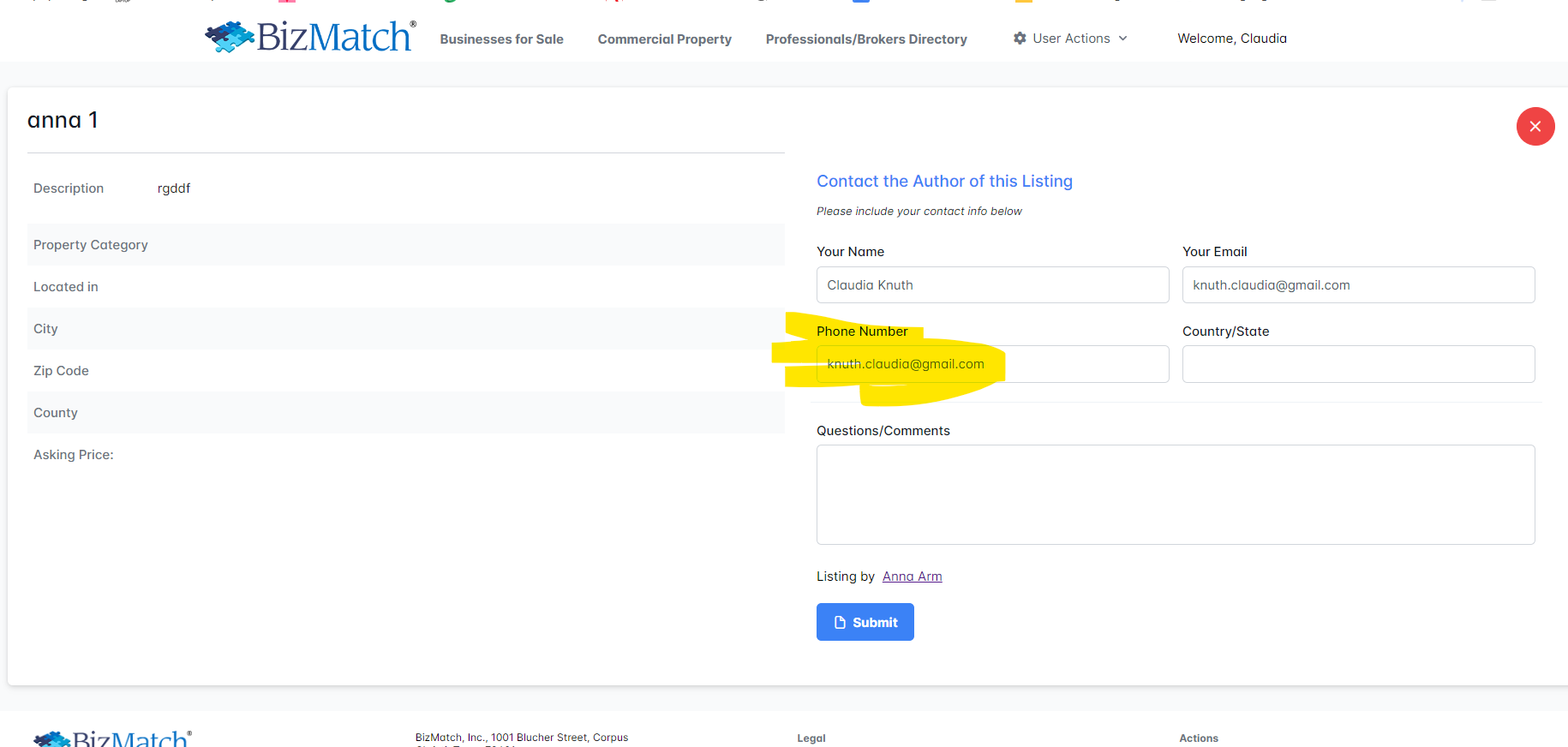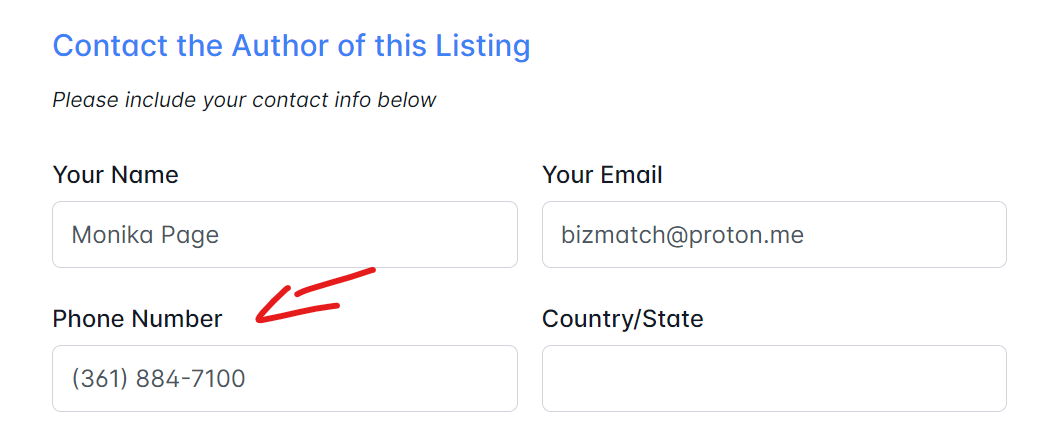 Vorbelegung "Contact the Author of this Listing" - Phone Number mit E-Mail Adresse gefüllt #48