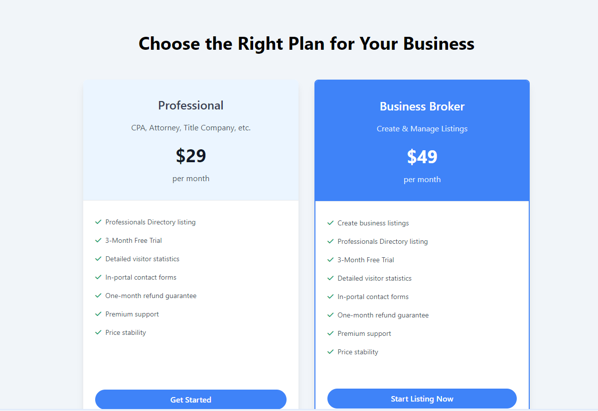 Dort stehen dann nur der Professional und Broker Plan zur Verfügung: