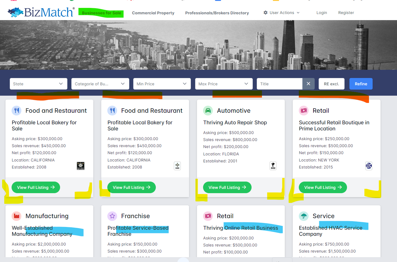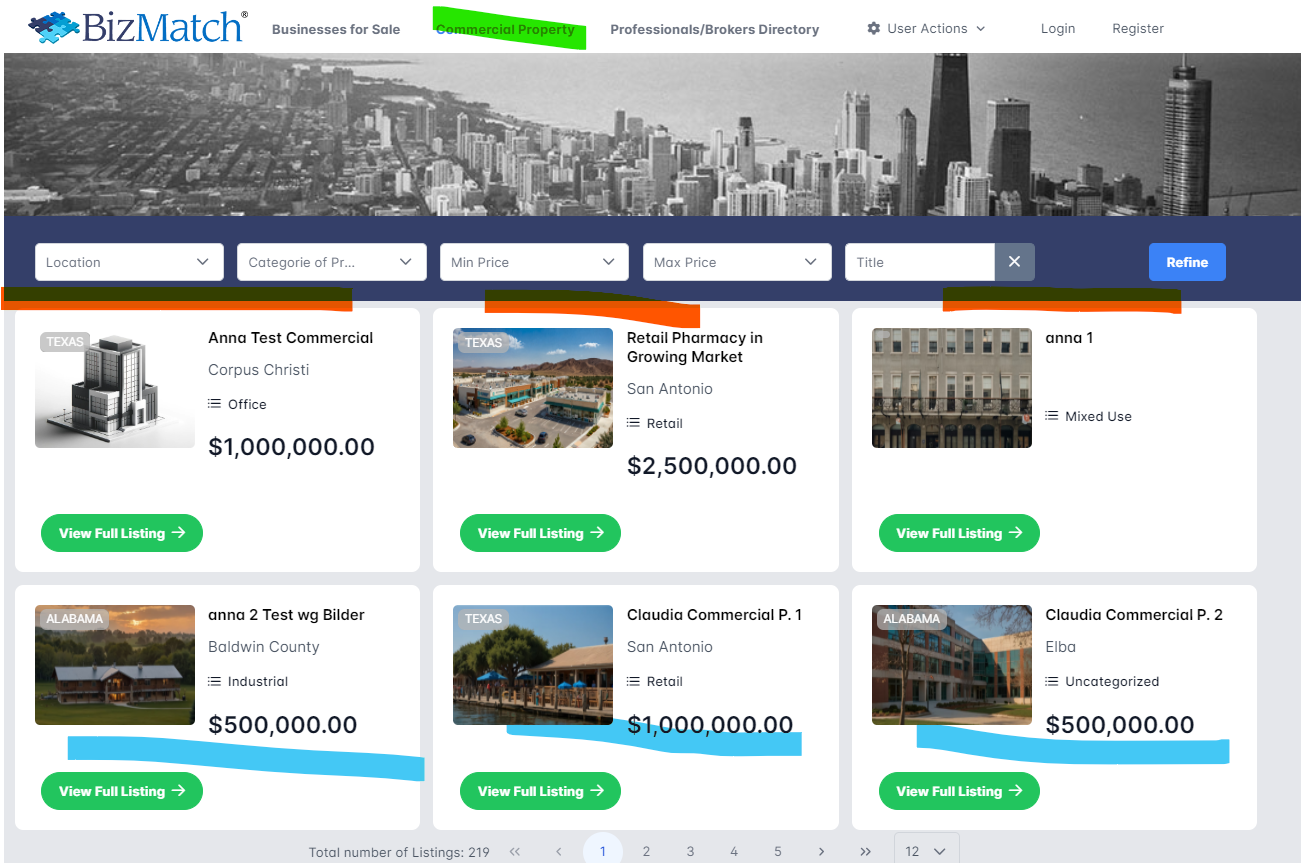 hier sind NUR drei Listings in einer Reihe (BLAU)