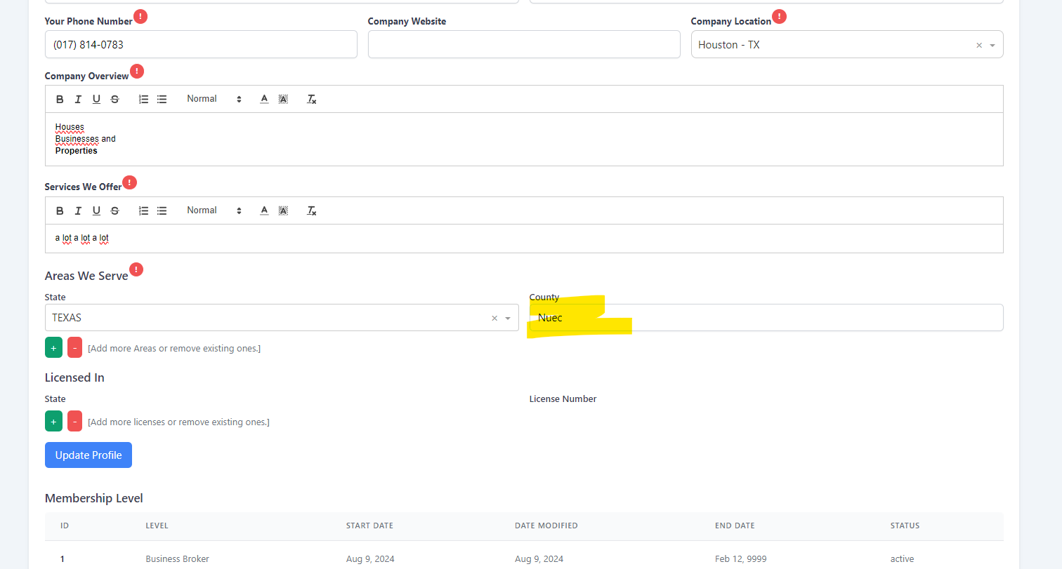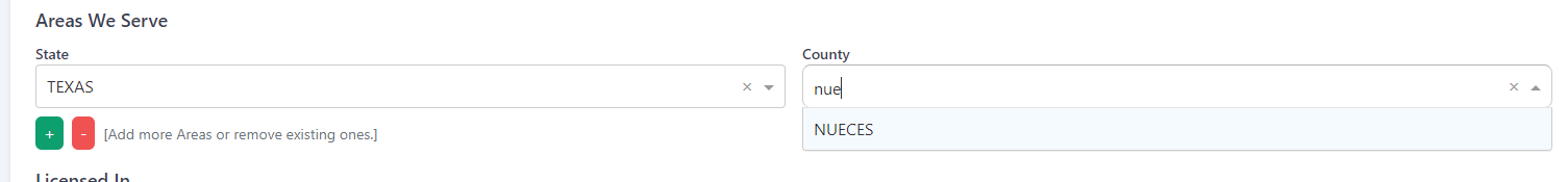 Profile - Areas we serve - Vorschlag fehlt #72