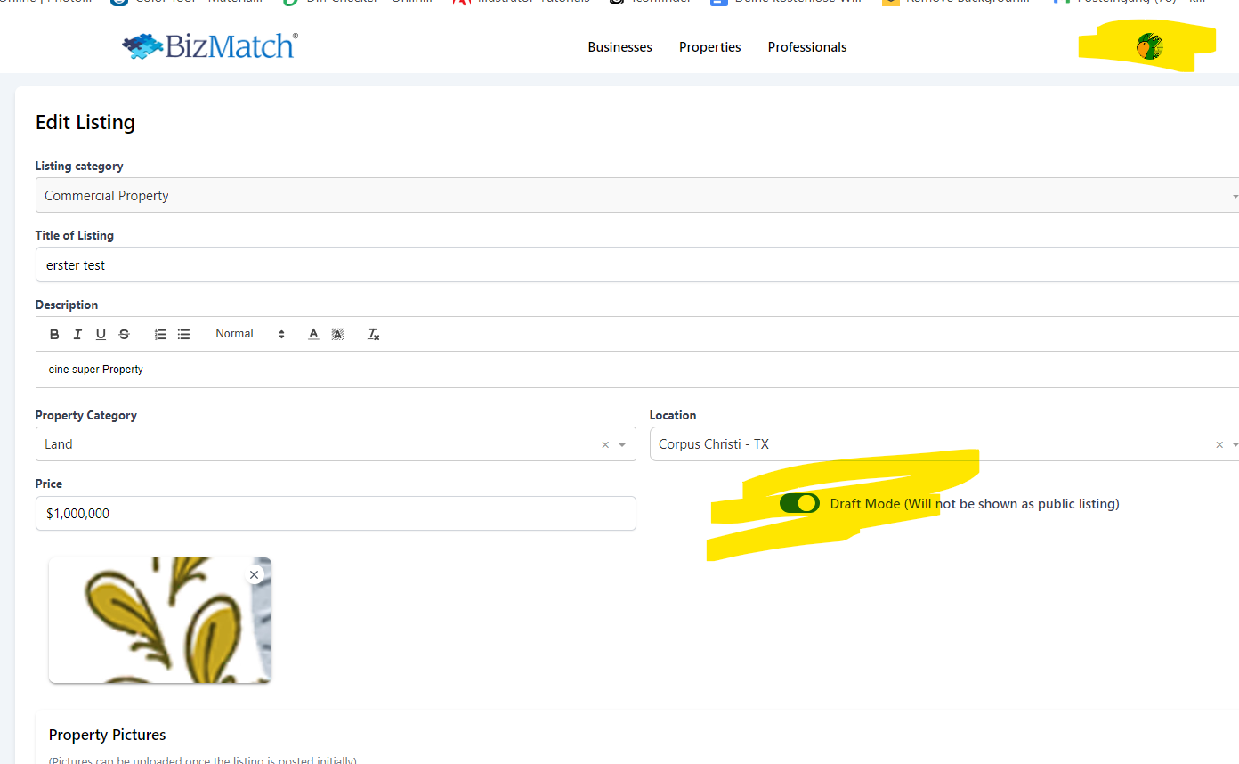 jedoch keinen Text, wenn man "View Listing" anklickt