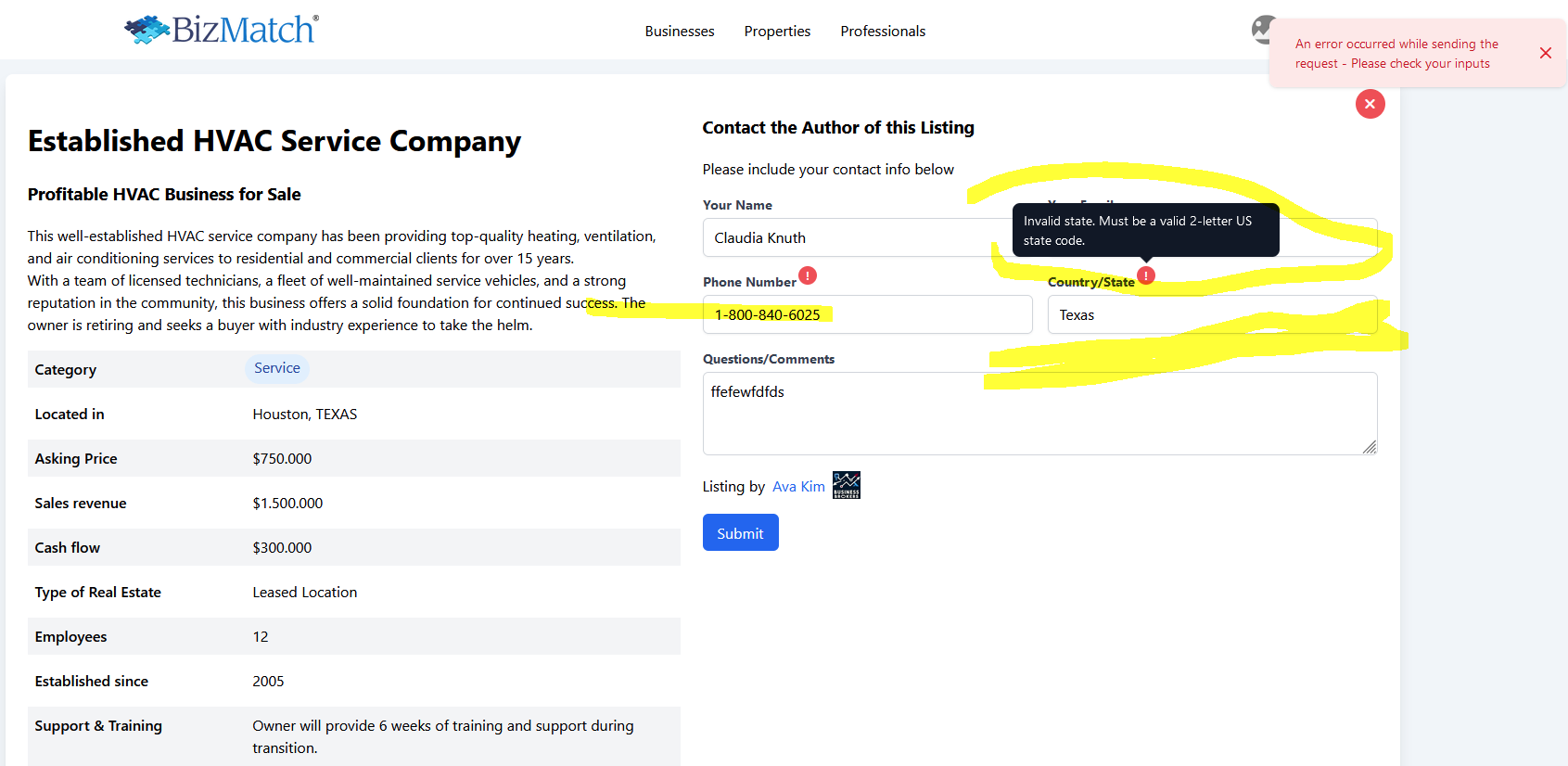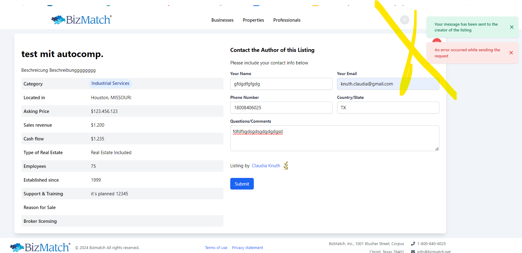 nun auch für Contact the author of the listing eingebaut