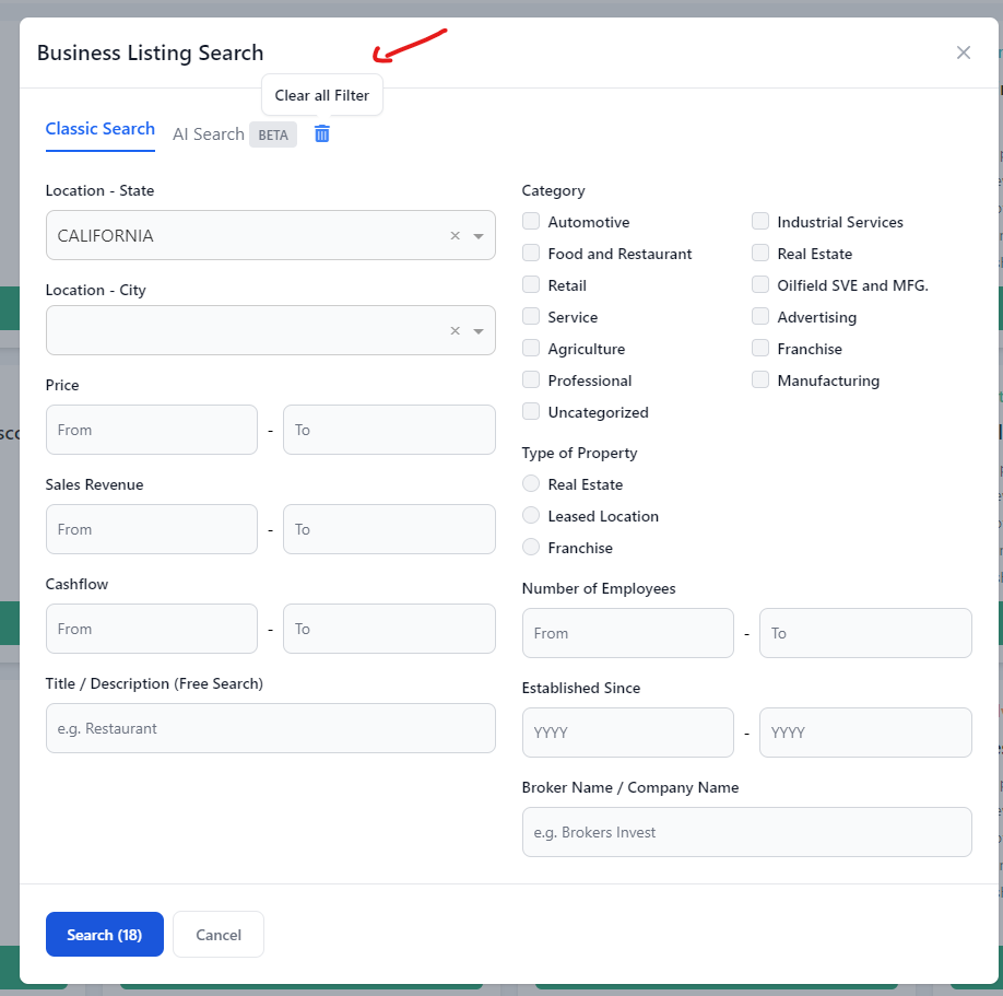 "Filter" - "clear all Filters"