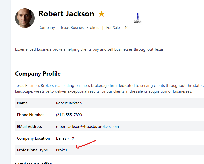 Professional Übersicht - Anzeige Broker, CPA, Attorney o.ä.