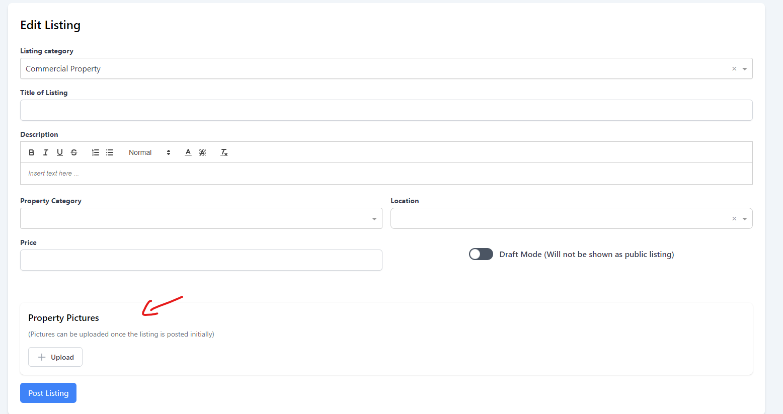 Create Listing - Real Estate Included / Leased Location / Franchise Re-Sale Mehfachselektion sinnvoll?