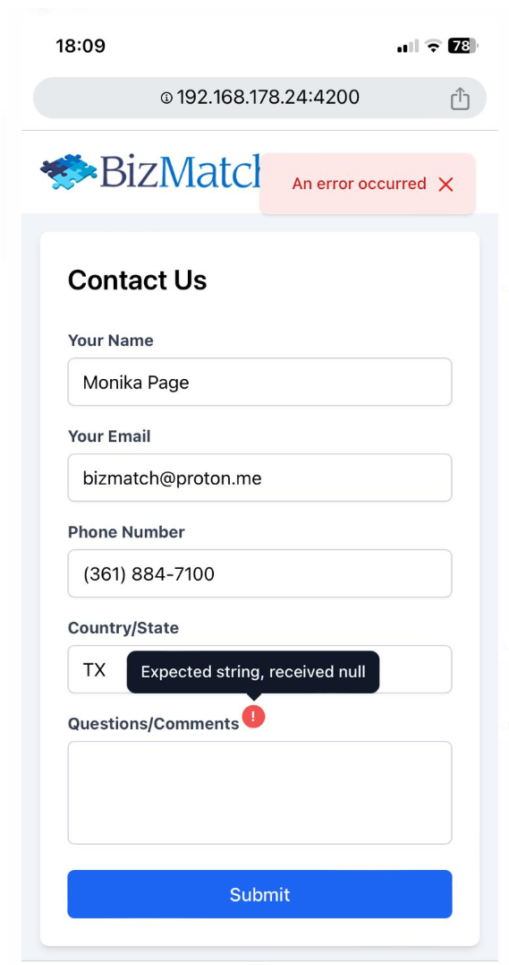 Mobile Version (Safari) - Tooltip funktioniert nicht richtig beim Fehlerhinweis